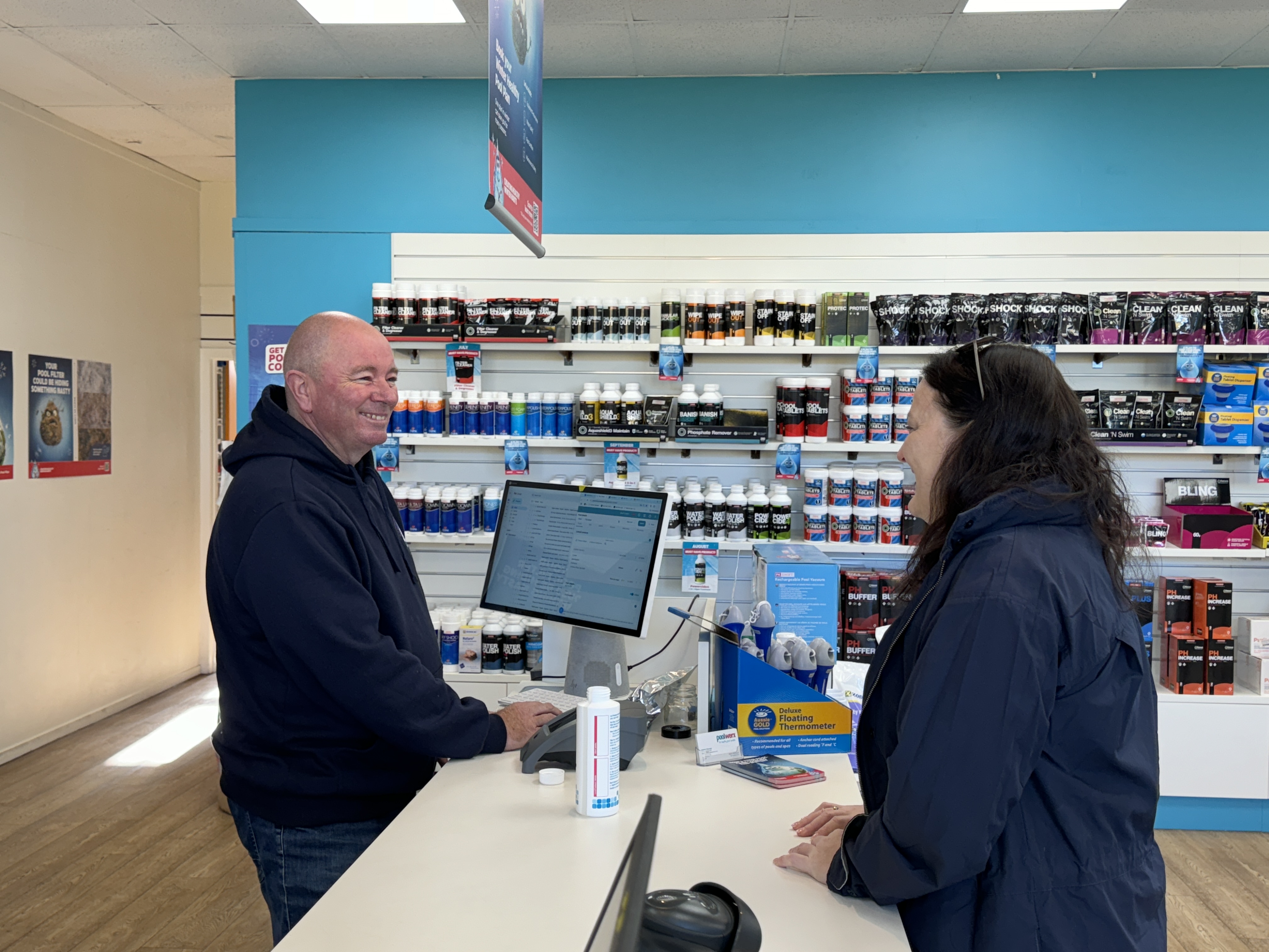 Visit us for free in-store water testing and expert advice. Our showroom is fully stocked with all the essential equipment and chemicals for your pool, including robotic cleaners, pumps, filters, chlorinators, and pool chemicals.